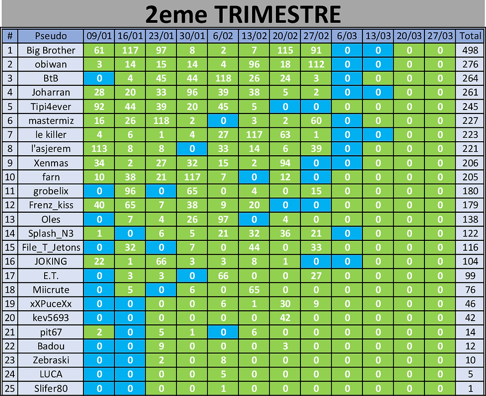 Classement Trimestriel